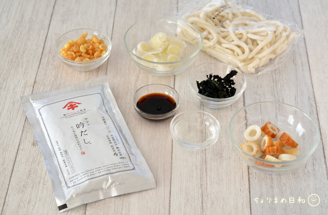 吟だしの風味とちくわ、わかめのそれぞれの旨味が加わるうま味たっぷりの出汁。