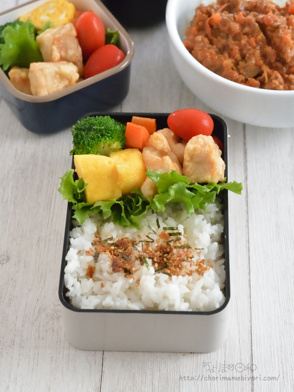 冷凍ストックしておいた手作り唐揚げをお弁当に忍ばせました。