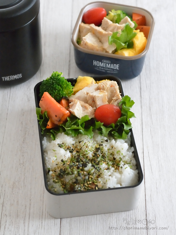 春休み昼弁当、もんちゃんは塾のためディナーボウルも作っておきます。