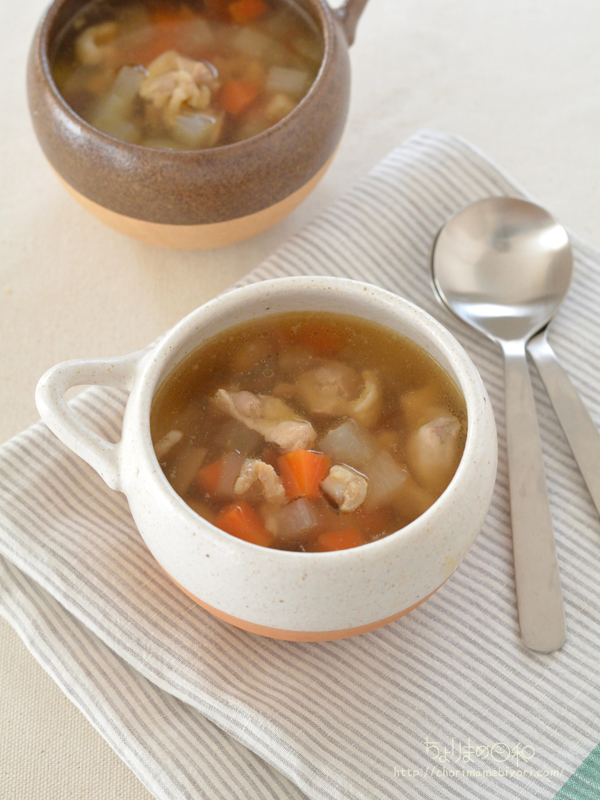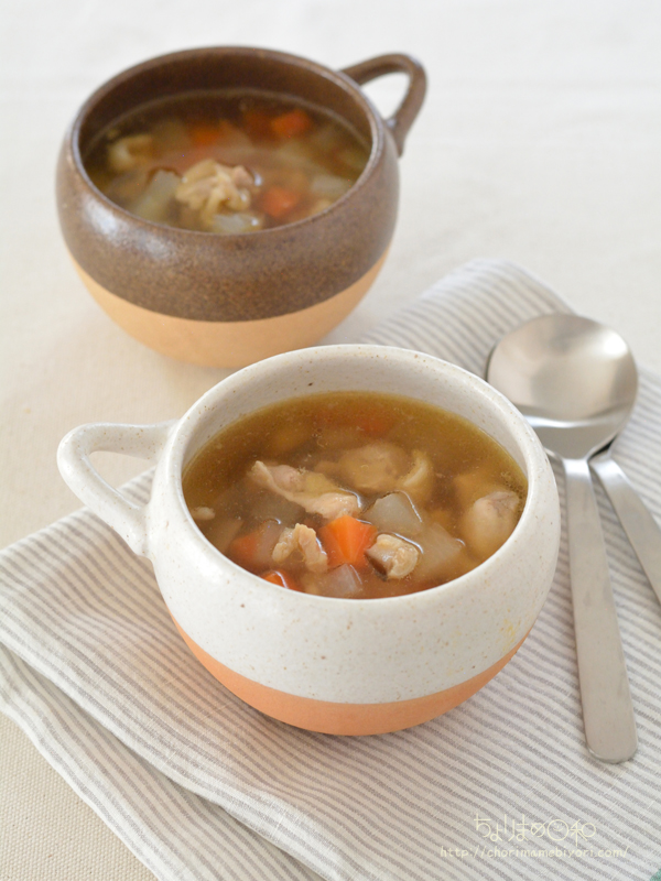 レンジ調理で簡単、根菜スープのレシピです~♪