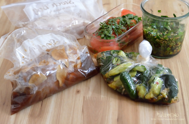 叩ききゅうりとピリ辛ねぎだれに漬けておく。