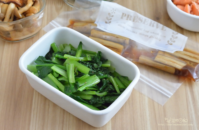 小松菜のナムルじゃなくて、オリーブ油とペッパー、塩で調味。