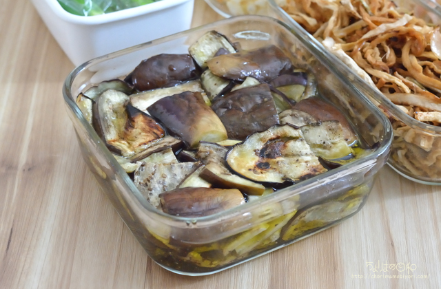 ピタサンドに入れる用に多めに作ったなすのマリネ。