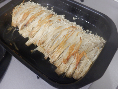 1.えのきは石づきを落とし、小房に分ける。グリルパンに広げて蓋をする。
