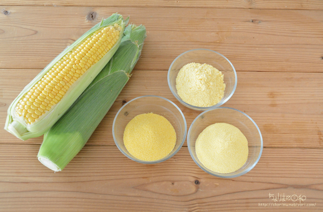 イングリッシュマフィンやコーンブレッドを作るときに欠かせないとうもろこしの粉。