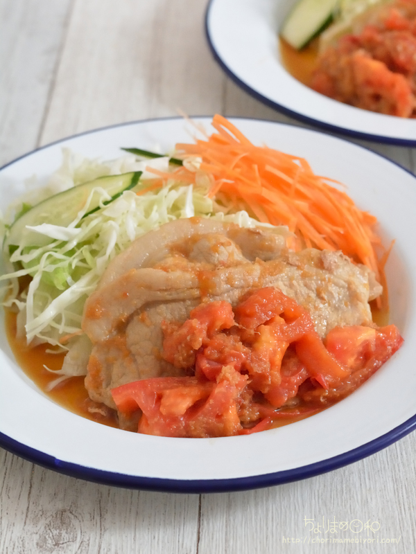 そんな気分も疲労を吹き飛ばすトマトのしょうが焼きにしました。