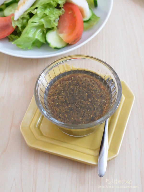 1.しょうが、しょうゆ、酢、砂糖を混ぜ合わせ、こめ油を注ぎながら混ぜる。山椒を加えて混ぜる。