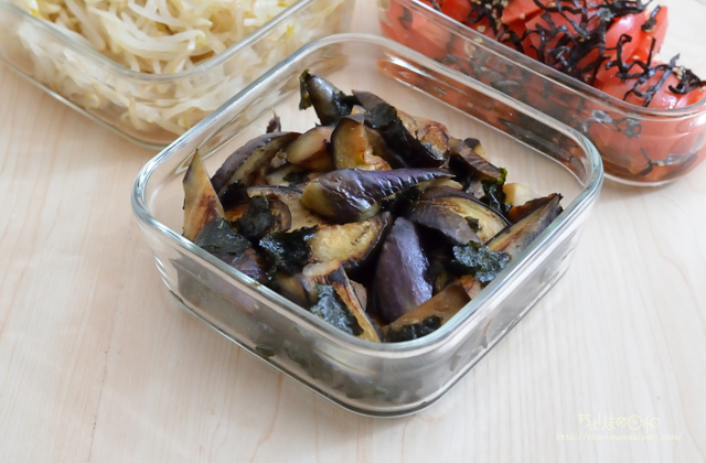 なすはフライパンの中で油をからめて蒸し焼き。