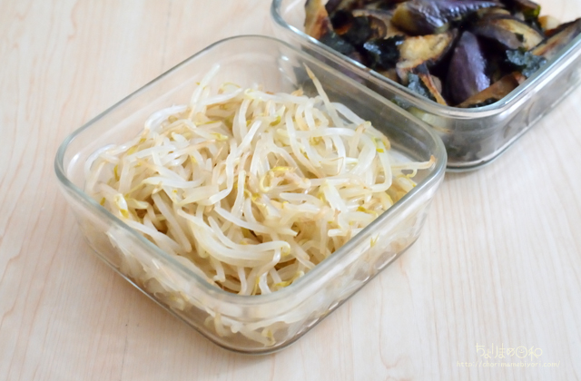 もやしは安定のレンジ調理。