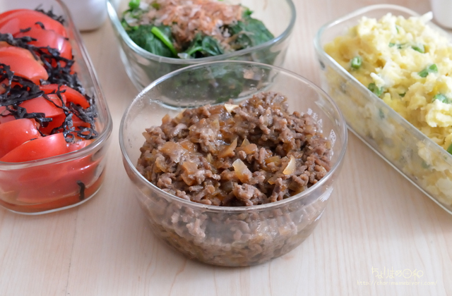レンジでできる甘辛そぼろ。