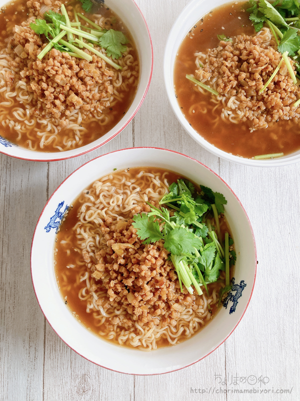 大豆そぼろはストック用に作ったけど、ラーメンにもトッピング。