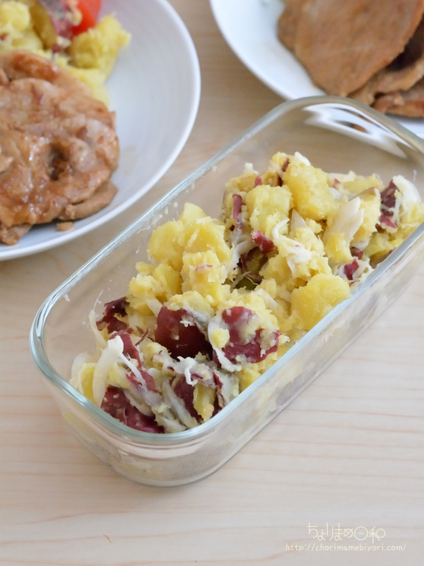 お相手は、こちらもお弁当にもっていこいのさつまいもオニオンサラダ。