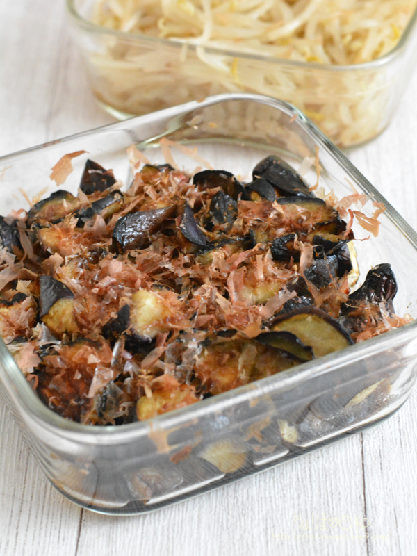 なすに油を絡めてフライパンで蒸し焼きしたなす。
