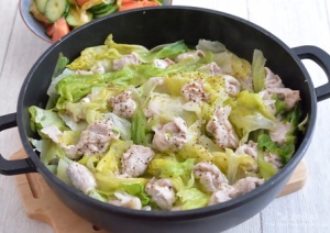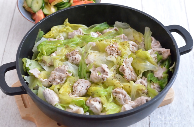 白菜と豚肉の蒸し鍋は定番だけど、レタスと豚肉もめちゃおいしい。