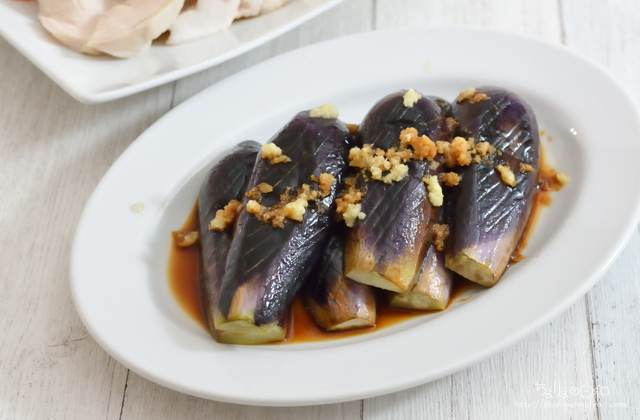 なすは油をからめてふたをして蒸し焼き。