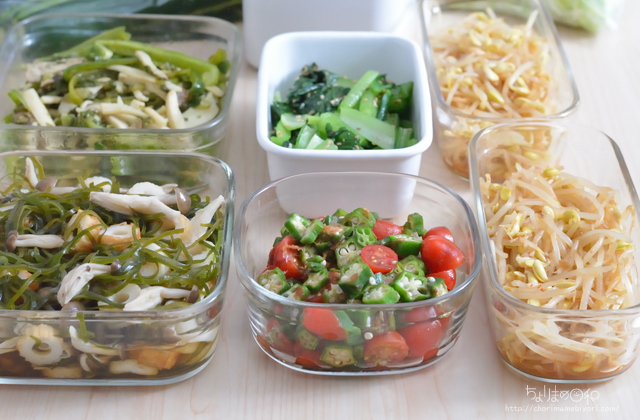 野菜おかずもりもりとさせて平日の作り置き。
