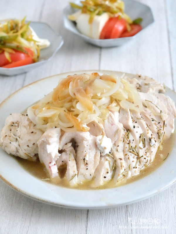 鶏むね肉に火が通るように蒸し煮にしYO!!