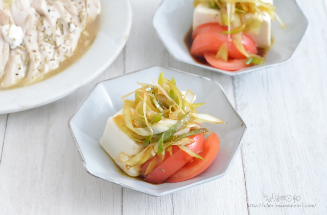 洋風の食卓にいける冷奴&冷やしトマト。