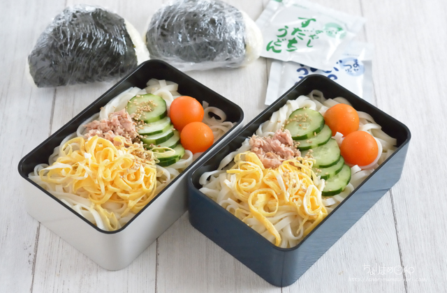 先輩ママと話してて「いいって言ってるよーするっといけるからさ~~」の言葉でやってみっかとなったうどん弁当です。