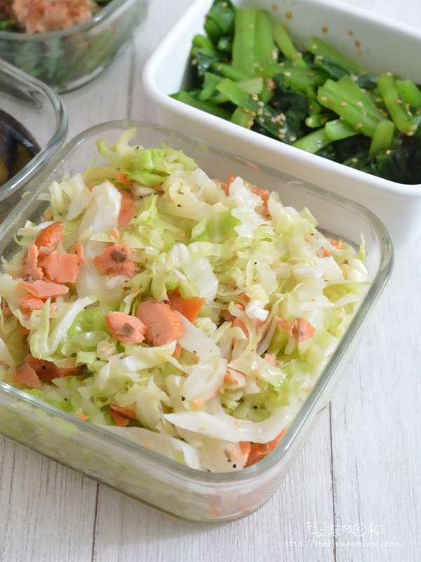 ツナもいいけど、塩鮭は色味とボリュームのお手伝いしてくれる。