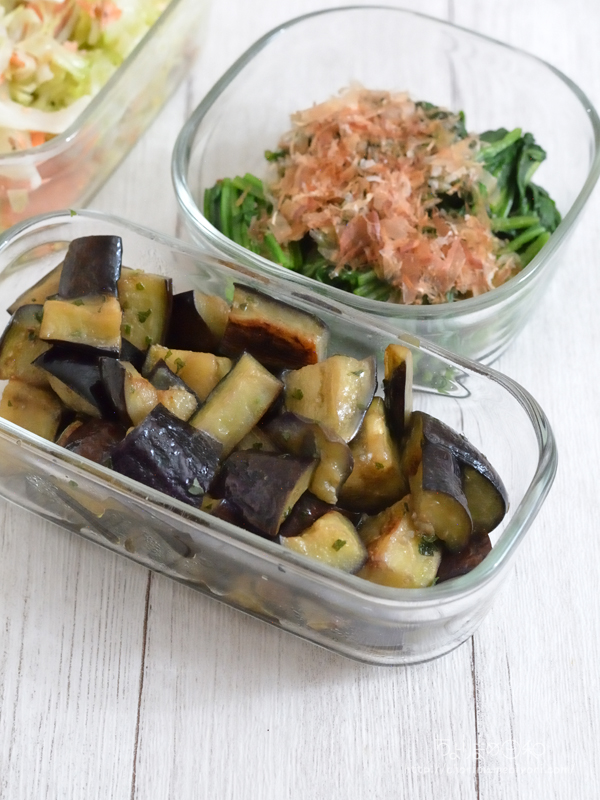 なすはオリーブ油をからめて蒸し焼き。