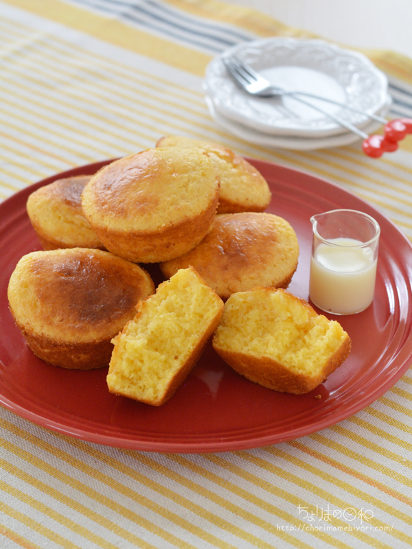コーングリッツと強力粉で作るアメリカンスタイルのコーンブレッドです。