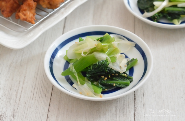 揚げているのでゆでたくない衝動からレンジで小松菜に火を通す。