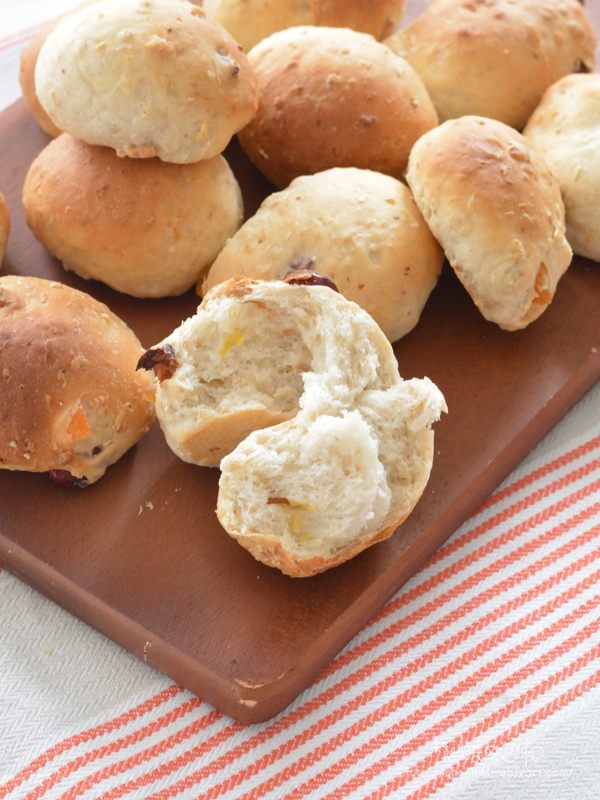 強力粉の量を減らして、フルーツグラノーラをたっぷりいれました。