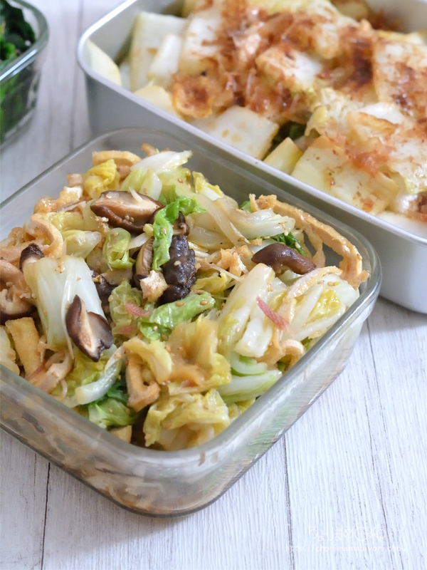 葉がたくさんあるようはレンジ加熱して和え物に。