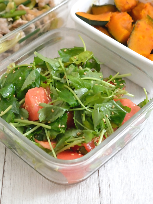 意外にも?もんちゃんにヒットしていた三つ葉とトマトのナムル。