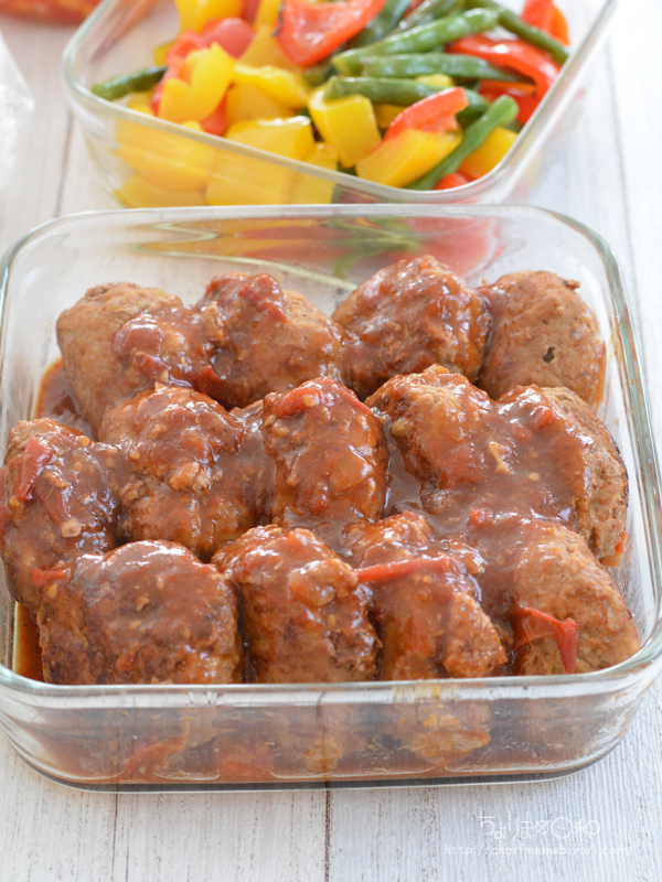 成形して焼いたら、刻んだトマト、酒、しょうゆ、オイスターソースを入れて蒸し煮する。