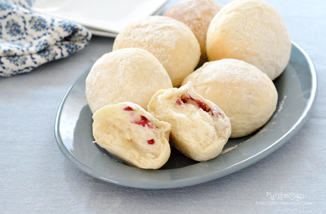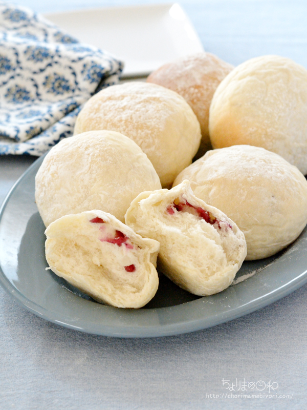 ふわふわの白パンに粒ジャムをたっぷり詰めました♡
