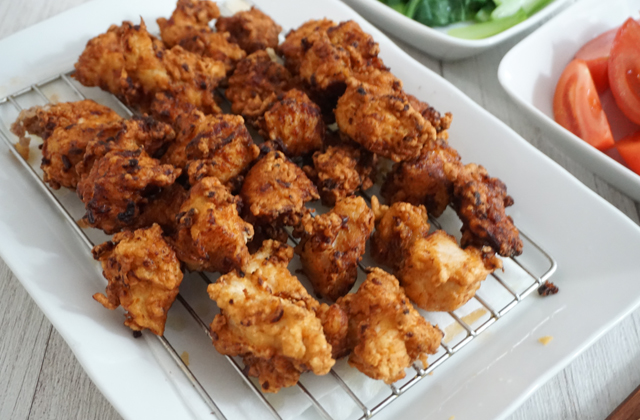 鍋の場所がずれたらえらいこっちゃなので、慎重に揚げる感じかな。(常に慎重であれよ)