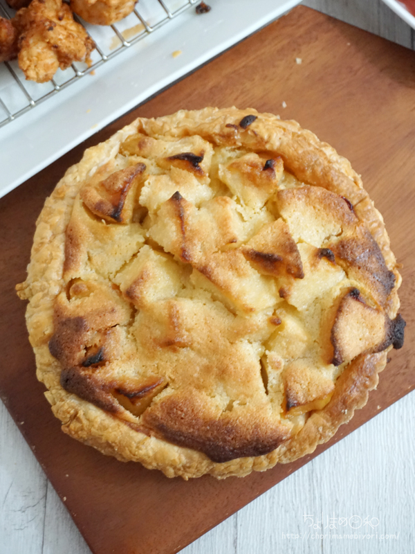 りんごのソテーにアーモンドダマンドをかけて焼成。