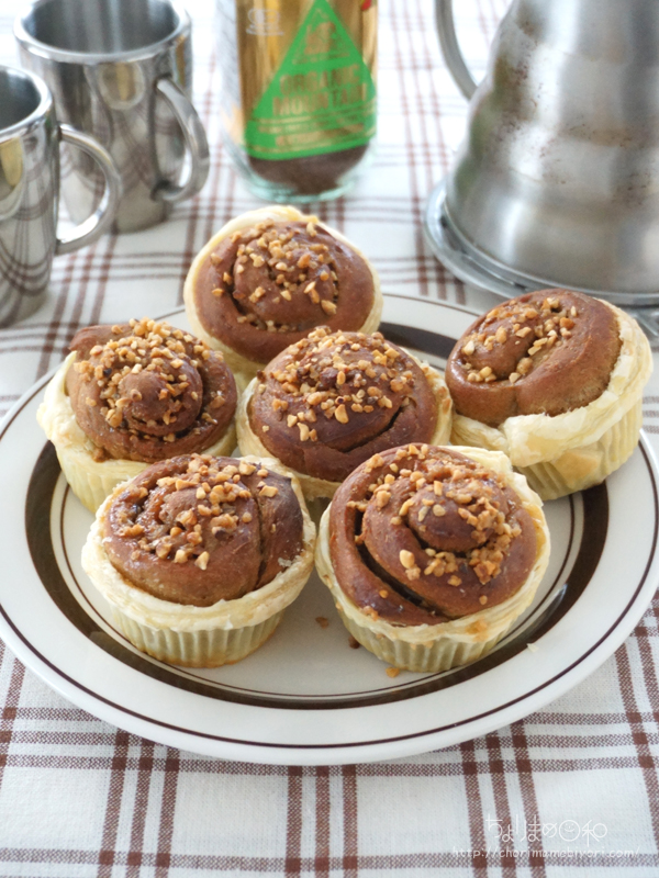 ビターなコーヒー味のパン生地の周りには、パイ生地。