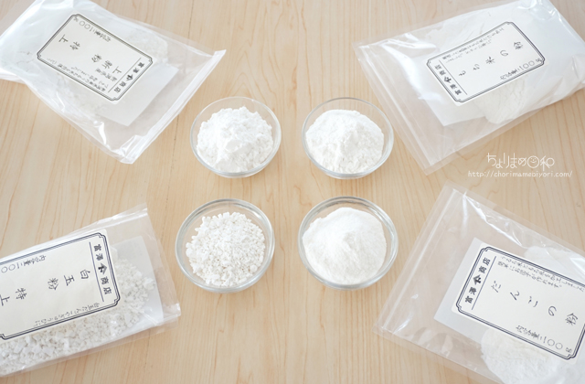 見た目は白い粉で、粒子が粗い、細かいなどあるのでどれがどれか、瞬時にわからないあるある粉たちです。(私的にw)