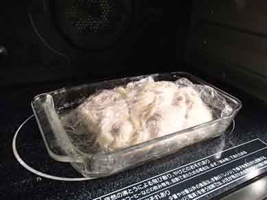 ※酒のアルコールがぬけるように皿にぴったりラップをしないようにする。