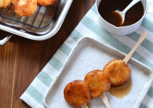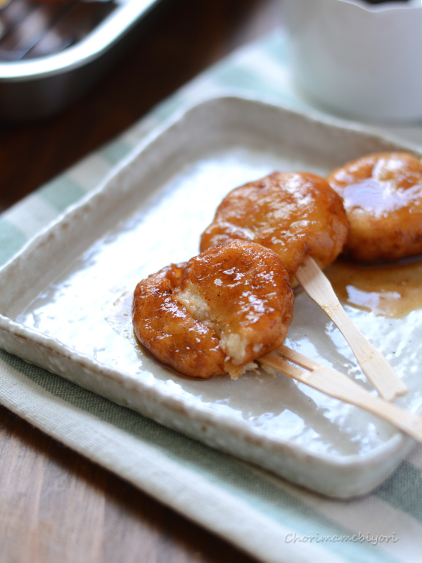 串にさして食べるときにソースをつける。