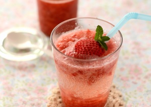 大粒の熊本県オリジナル品種の「ひのしずく」。つぶすだけで出来る甘みと酸味が絶妙のいちごソースとシュワっと炭酸水でフレッシュソーダを!「ひのしずく」を丸ごと凍らせた氷いちごを浮かべてどうぞ♪