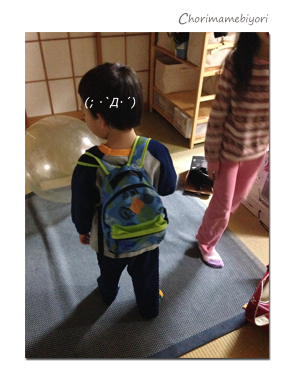 パジャマに重々しいリュックって、すっごい違和感。