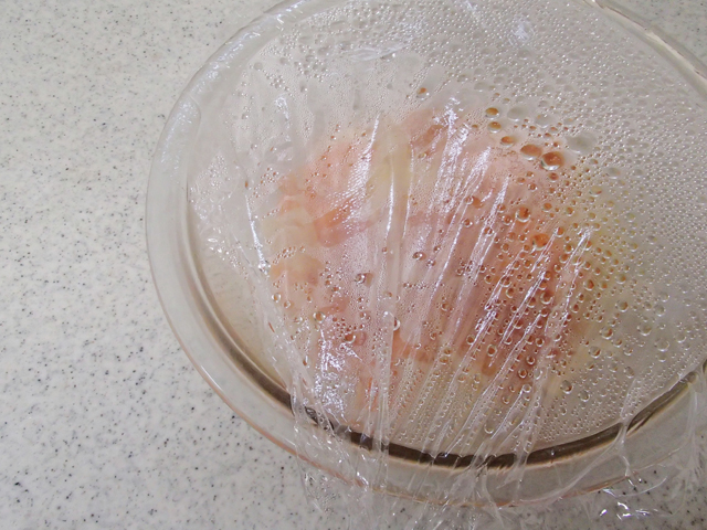 2.ふんわりとラップをして電子レンジで8分加熱する。