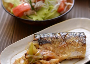 フライパン塩サバと炒めねぎ