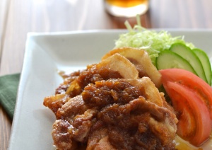 玉ねぎおろしだれの豚肉カリっとしょうが焼き