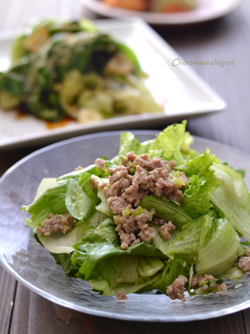 大葉が香るレタスのねぎ豚和え