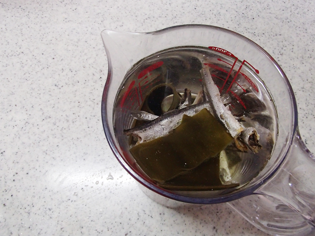 だし汁は1000mlが作りにくい場合は、にぼし、だし昆布と500mlを合わせて30分おき、二度目のだし汁を加えるときに水を500ml加えても良いです。