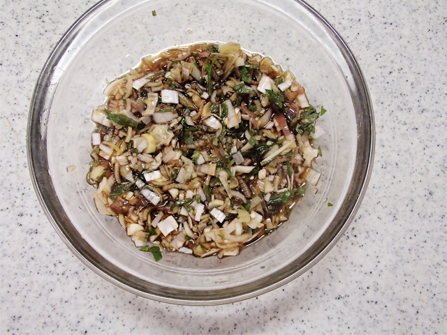 ・みょうは、大葉、長ねぎはみじん切りにする。