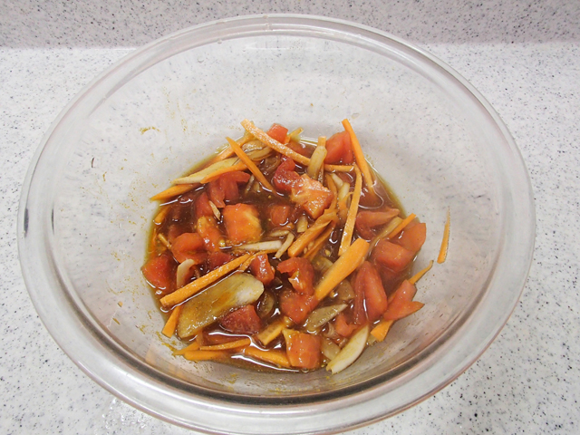 ・にんじんは細切りにする。