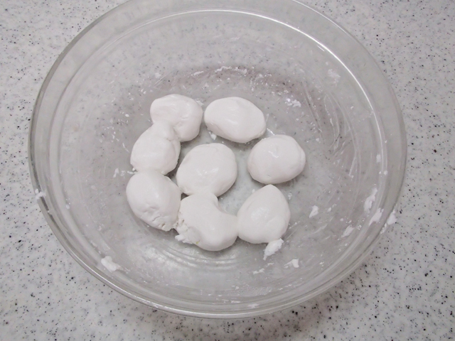 1.Aを合わせてこね、8等分にする。