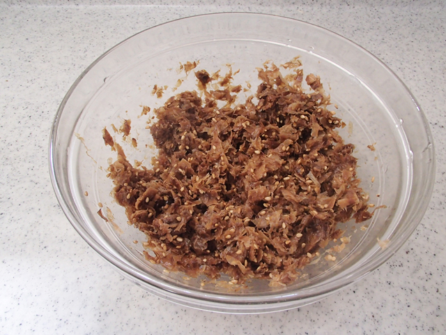 2.フライパンにごま油を入れて熱し、だしがら、Aを入れて汁気がなくなるまで炒める。白ごまを加えてさらにしっかりと水分が飛んだら出来上がり。