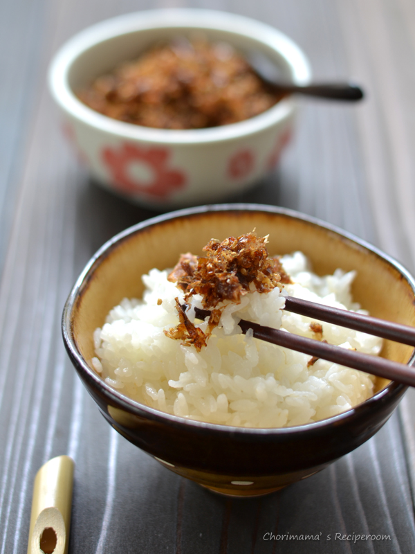 火を入れて作るパラパラの「だしがらふりかけ」。